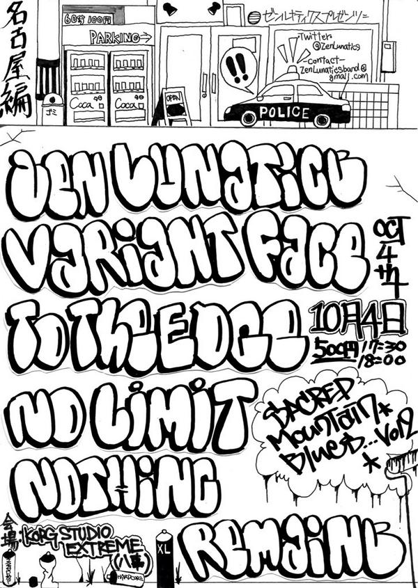Brave Out / Nothing RemainsのタカサゴさんやHostile Eyes / No Serenityのシコウくんにアドバイスを頂き、会場とかを決めました。また、No Limitに声を掛けるに当たってはNothing Remains / Shattered Stoneの伊与田さんにお力添えをいただきました。本当にありがとうございました。